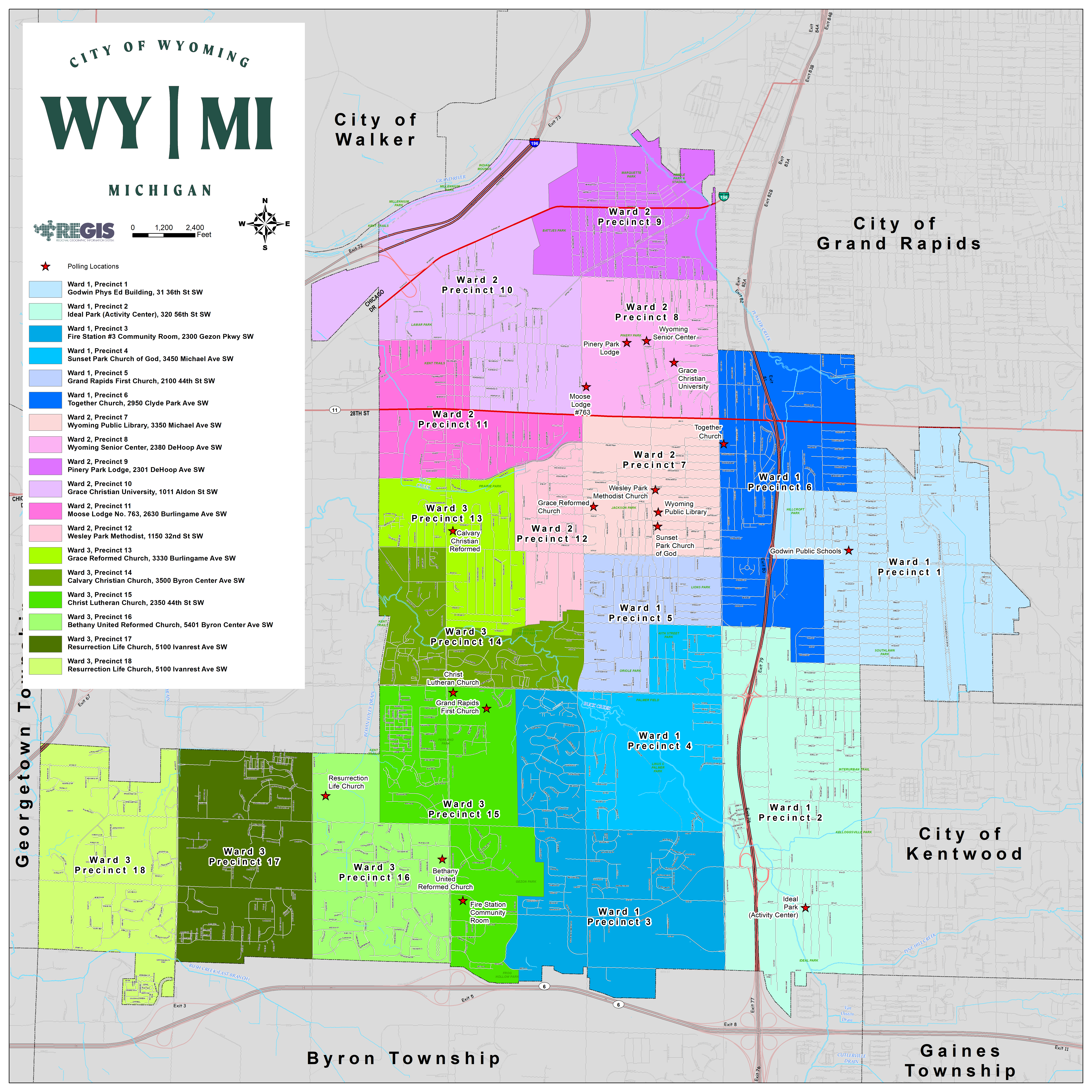 The City of Wyoming made some important changes to the voting precincts. Click on the map below to zoom in and explore new boundaries and precinct locations.